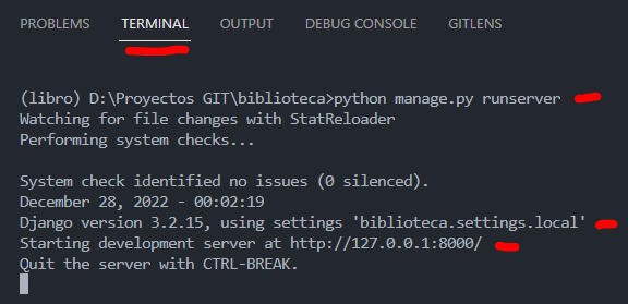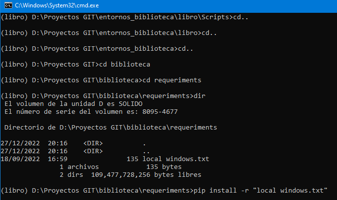 4. creamos el proyecto debemos ir a la ruta donde queremos crear el proyecto, para ello debemos tener el entorno activado en este caso (libro)