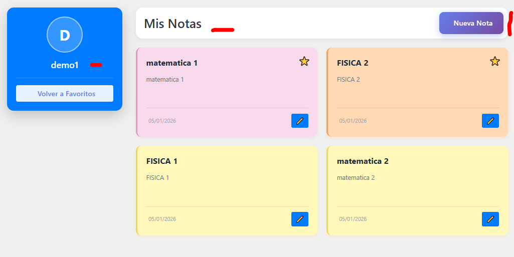 - En este panel podemos Ver Crear Modificar y Eliminar una Nota