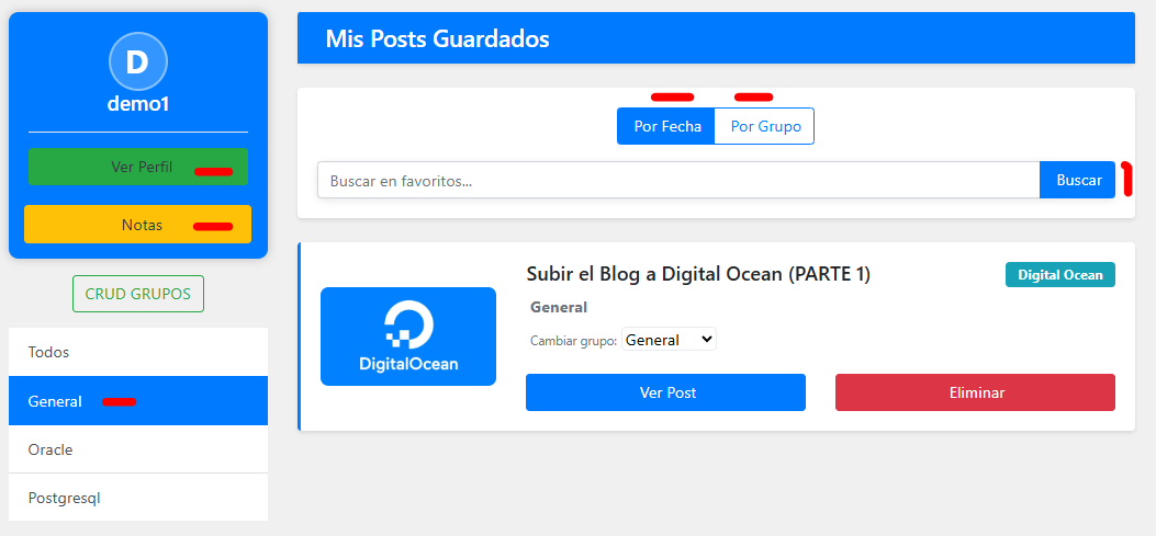 Los Posts que le hayamos dado a Añadir a Favoritos se mostraran en este panel :