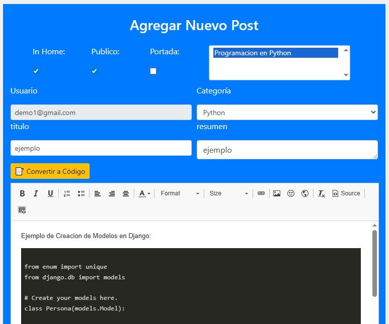 Agregar Un Post Nuevo: