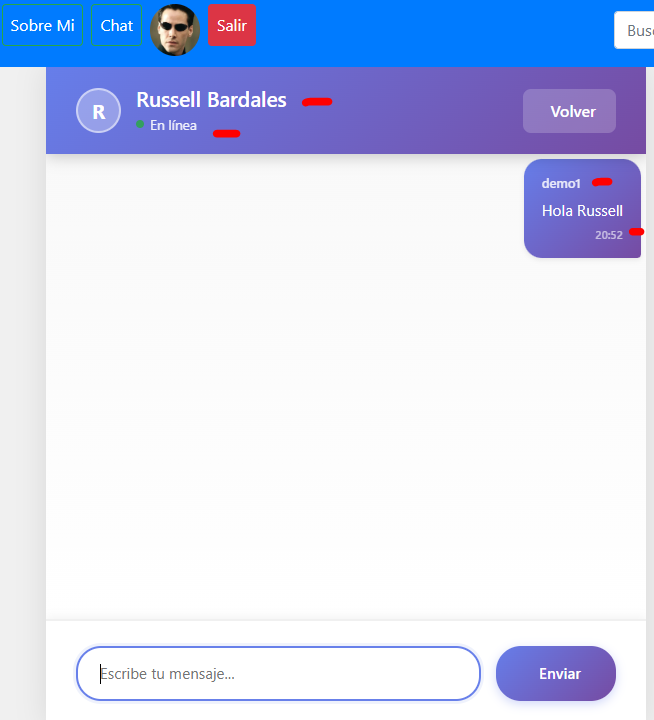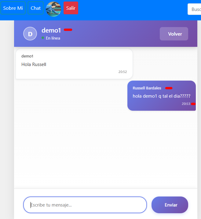 - para iniciar una conversacion solo damos click en el usuario en linea con el que queremos chatear