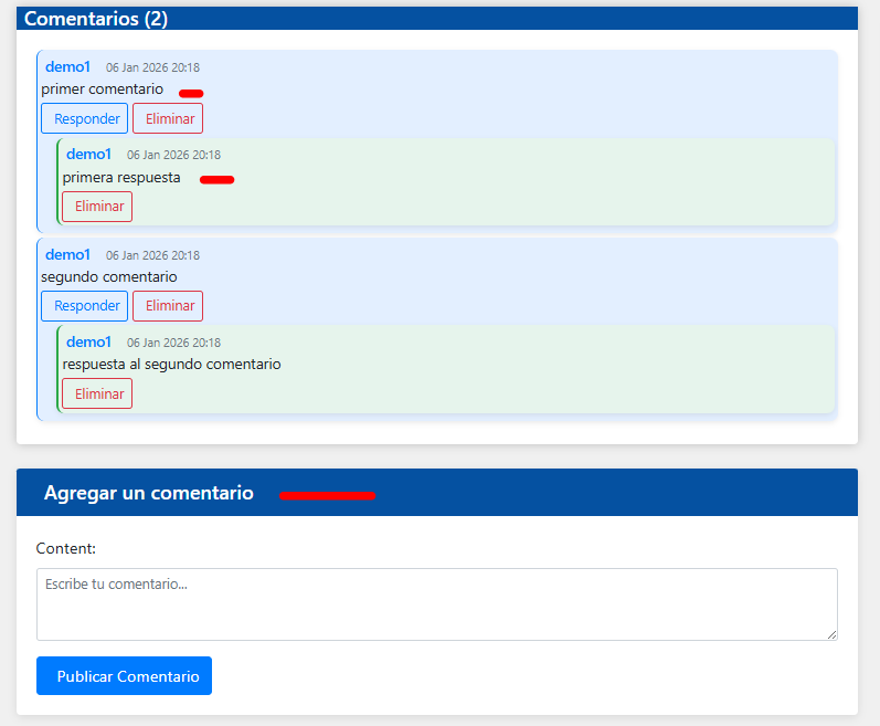 Se puede Ver el post q se creo y las opciones para añadir en favoritos darle like y podemos ver los comentarios.