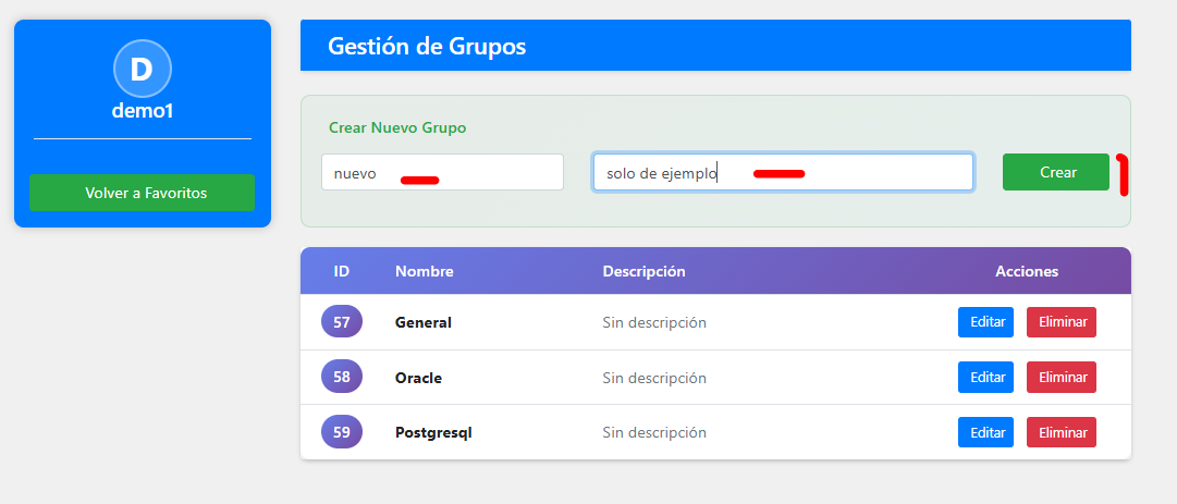 - Podemos Ver Crear eliminar y modificar Grupos .